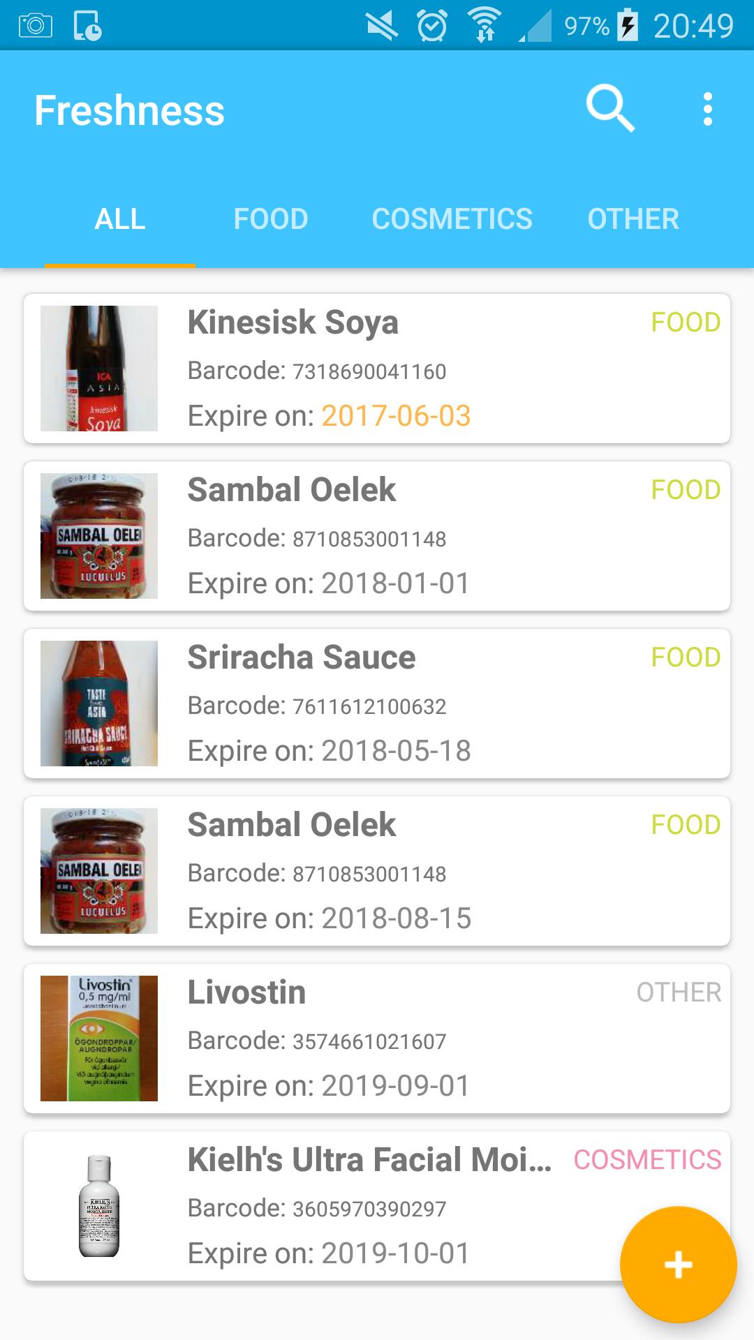 Scannen Sie Barcode und verwalten Sie und werden Sie über die Ablaufdaten Ihrer Artikel informiert.