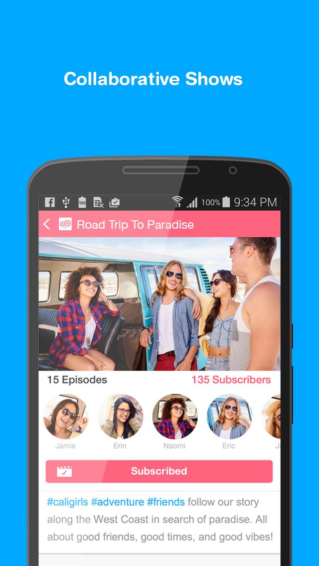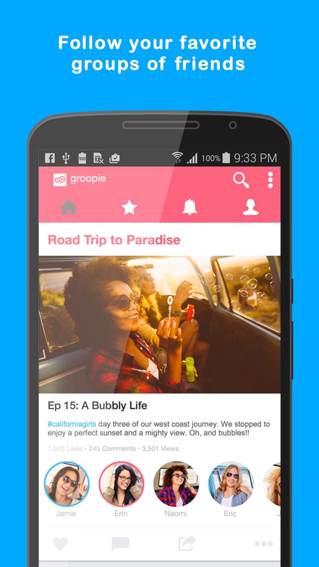 Groopie ist eine einfache Möglichkeit für Freunde, kollaborative Videos zu erstellen und gemeinsam Geschichten zu teilen. Abonnieren Sie Ihre Lieblingsshows, folgen und interagieren Sie mit Freunden, wie und kommentieren Sie Folgen. Studio kommt bald!
