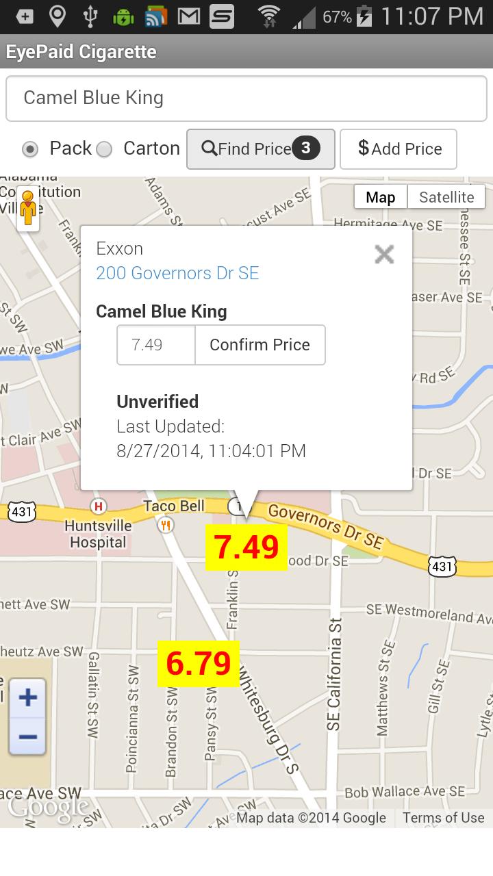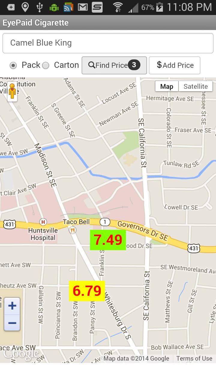 Der Eyepaid -Service bietet echte Preise von echten Menschen. Finden Sie die 5 niedrigsten Preise für eine Packung oder einen Karton von Zigaretten in der Karte auf Ihrem Bildschirm. Alle Preise werden von anderen Benutzern bereitgestellt.