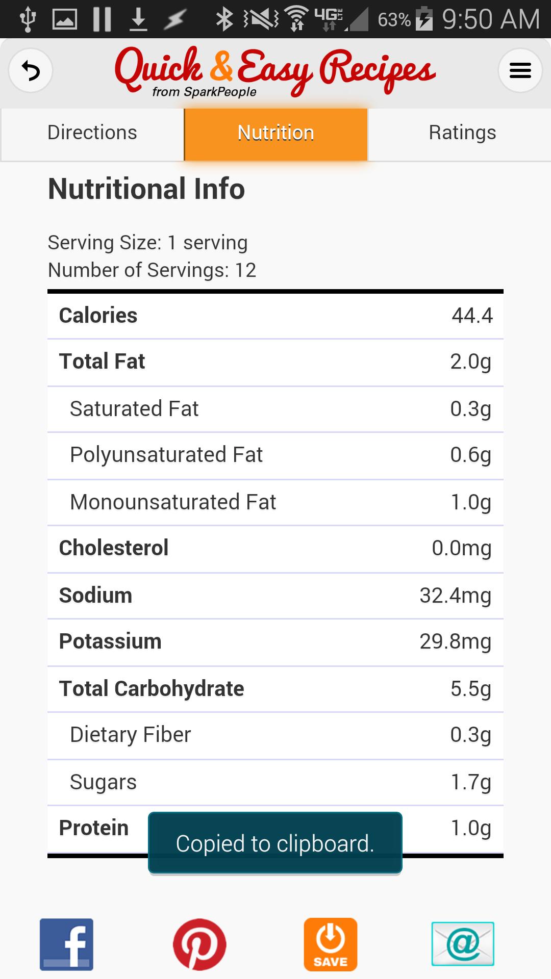 - Eine vollständige Ernährungsumbreitung jedes Rezepts, einschließlich Kalorien, Fett, Cholesterin, Natrium, Protein, Kohlenhydraten und mehr