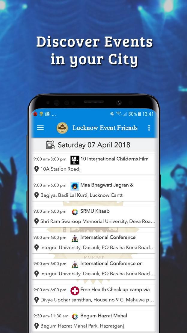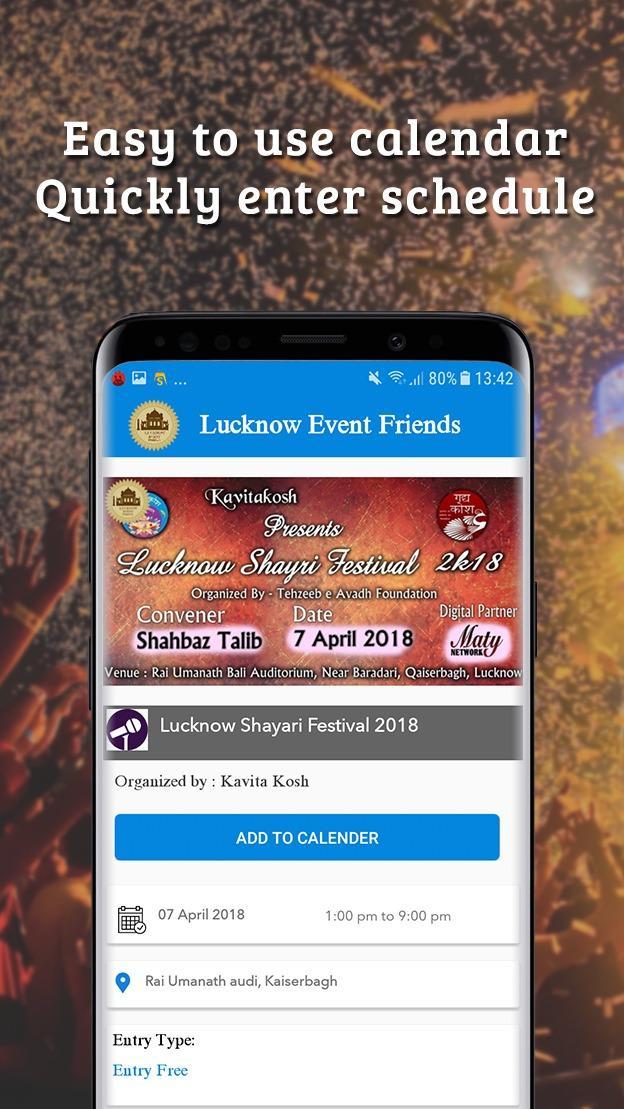 1. Bei durchschnittlichen 2-68 Ereignissen treten täglich in Lucknow statt, aber die meisten Menschen sind sich nicht bewusst, sodass wir über App-Informationsdienste über App anbieten, können wir über "Hinzufügen zu Kalender hinzufügen" festgelegt werden.