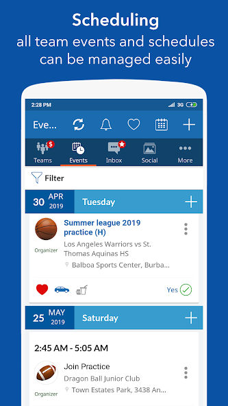 • Ereignisverwaltung: Erstellen Sie mehrere Ereignisse an mehreren Tagen oder bearbeiten Sie Ereignisse in großen Mengen mit nur wenigen Klicks. Erstellen Sie Spiele, Übungen, Meetings und andere Veranstaltungen für alle Ihre Teams in einem Schuss, die doppelte Arbeit beseitigen.