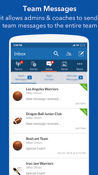 InstaTeam ist mehr als ein Sportteamplaner oder Aktivitätenmanager. Es ermöglicht Echtzeit-Nachrichten zwischen Teammitgliedern, Trainern, Eltern und anderen und gleichzeitig die Privatsphäre. Trainer können nicht nur sofortige Nachrichten für wichtige Updates wie Stornierungen oder Änderungen des Veranstaltungsortes senden, sondern auch den Status überwacht, welche Teammitglieder ihre Nachrichten gesehen oder auf ihre Nachrichten beantwortet haben.