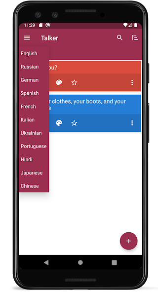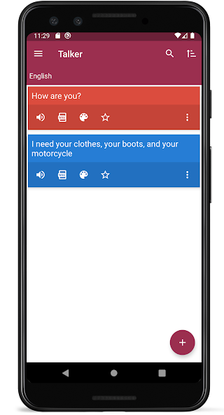 Talker ist eine sehr einfache und einfach zu verwendende Notepad -Anwendung: Fügen Sie Ihrer Liste einfach Wort oder Phrase hinzu und tippen Sie darauf. Sie können auch Text aus anderen Apps importieren.