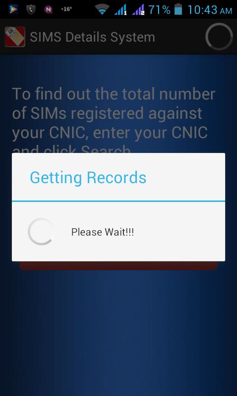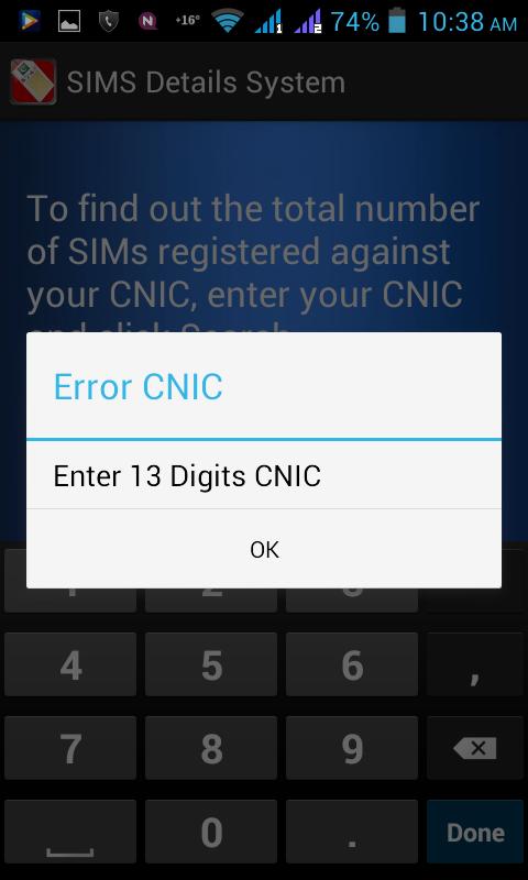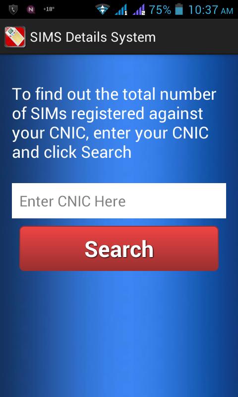 Mit dieser Apps wird Daten von der PTA Pakistan Telecommunication Authority abgerufen. Sie finden die Gesamtzahl der Sims, die gegen Ihr CNIC online registriert sind, indem Sie in dieser App die nationale Identitätskartennummer eingeben.