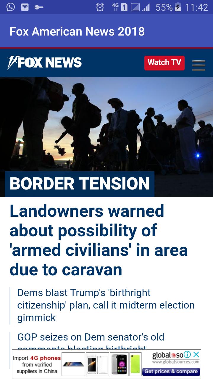 Sehen Sie sich jederzeit und überall nach Nachrichten an! Egal, ob es sich bei News -Benachrichtigen, den neuesten, trendigen Artikeln, den USA und den Nachrichten oder Meinungsstücken zu Politik und Unterhaltung aus Ihren Lieblings -Nachrichtenpersönlichkeiten ein, die Fox News -App passt problemlos in Ihren geschäftigen Lebensstil ein. Befolgen Sie die neuesten Schlagzeilen für Sport- und Geschäftsleben und sehen Sie sich Live -Streaming -Video an - alles von Ihrem Android Mobile -Gerät!
