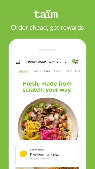 Laden Sie die taim -App herunter, um für jede Bestellung belohnt zu werden! Essen Sie taim , verdienen Sie taim