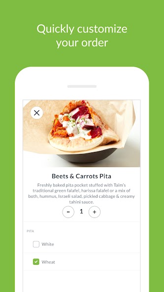 Laden Sie die taim Mediterranean App herunter, um Belohnungen zu erhalten und sie mit jeder Bestellung einzulösen. So funktioniert es: