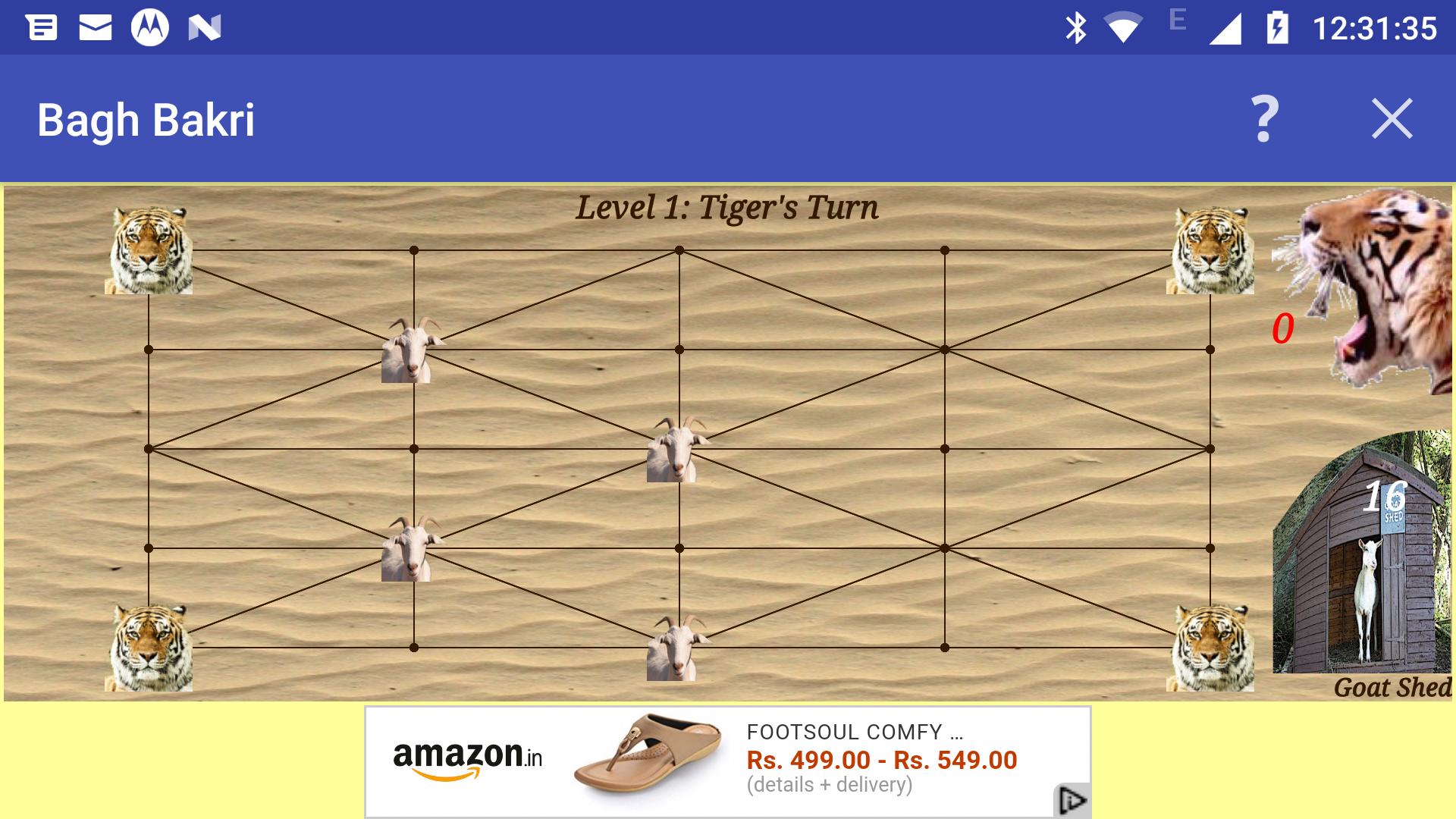 1. Es ist ein 2 -Spieler -Spiel. Ein Spieler muss als Tiger spielen und andere sollten als Ziege spielen. Wenn Sie alleine spielen, ist das Gerät der andere Spieler.