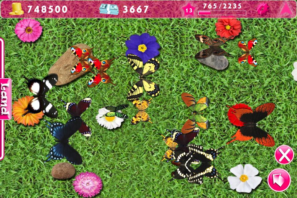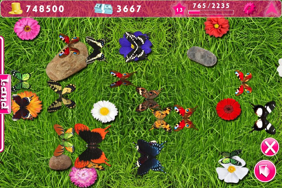 Machen Sie einen Schmetterlingsgarten mit bunten Schmetterlingen. Simulieren Sie Ihren Garten mit vielen Schmetterlingen, Blumen. Wählen Sie aus verschiedenen Hintergründen. Fügen Sie Schmetterlinge hinzu, sehen Sie Ihre Schmetterlinge leben und verkaufen Sie sie, wenn sie erwachsen sind. Brecken Sie zwischen Schmetterlingen, um etwas Besonderes zu bekommen.