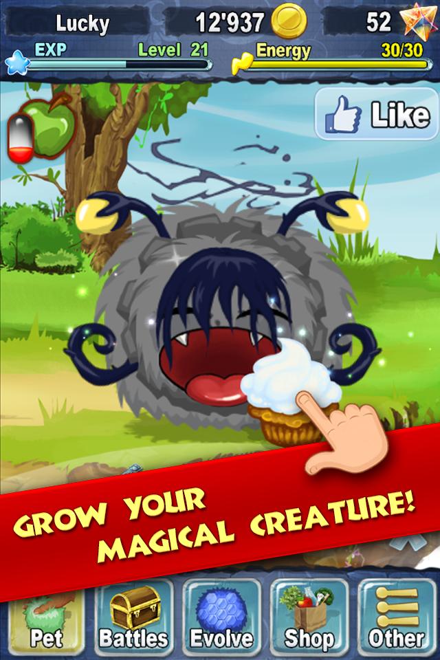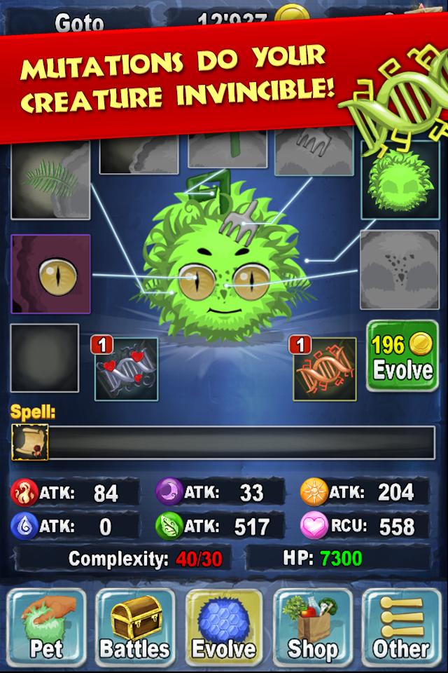 Erstellen Sie Ihre magische Kreatur und entwickeln Sie sie, indem Sie verschiedene genetische Materialien in Schlachten mit Monstern finden.