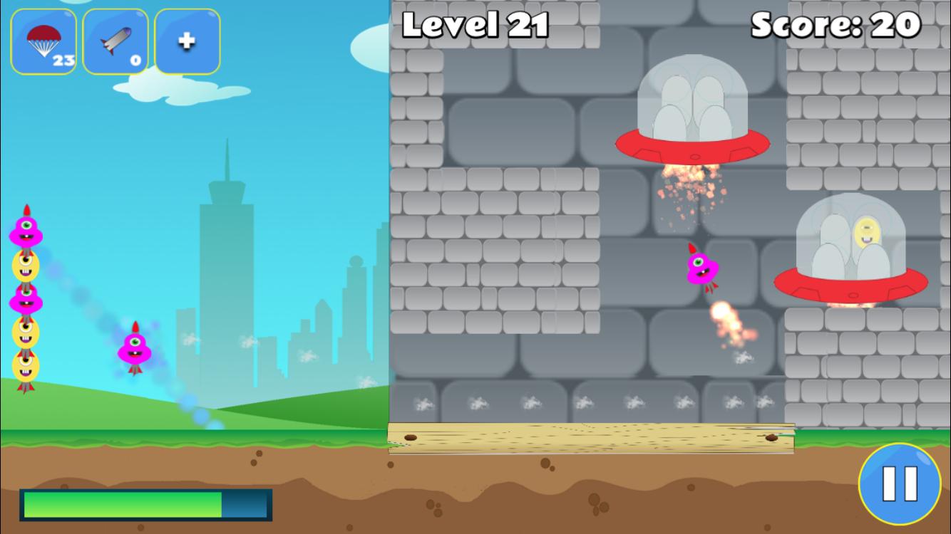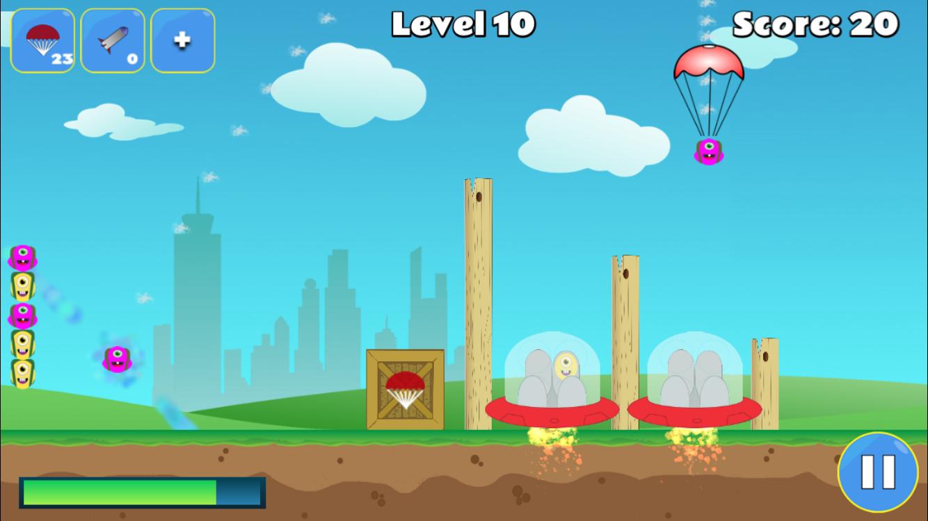 Verwenden Sie Ihr Alien -Evakuierungsstartgerät, um eine Vielzahl freundlicher Außerirdischen in Fluchtkapseln zu führen und in Sicherheit zu bringen. Dies erfordert sowohl Präzisions- als auch Rätsel lösen Fähigkeit, Hindernisse wie bewegliche Plattformen, Trampoline und sogar große Raubtiere zu überwinden! Zum Glück haben Sie eine Reihe von Power -Ups, die Ihnen helfen, wie Fallschirme und geführte Raketenpakete.