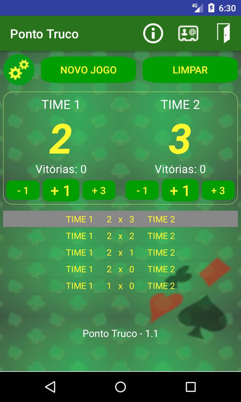 Darin ist es möglich, die Namen der Teams zu ändern, die maximale Anzahl von Punkten pro Hand auszuwählen und die Geschichte jedes Zuges zu verfolgen.