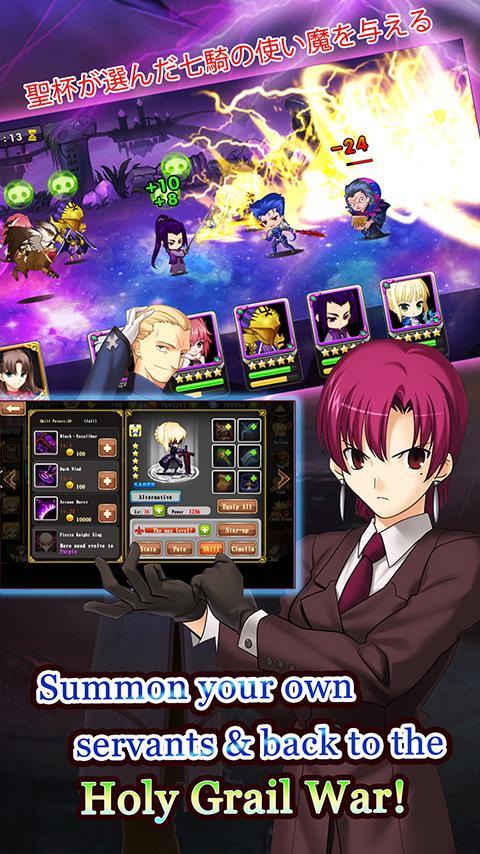 Bringen Sie Sie nach Fuyuki City, um Ihr eigenes Team zu finden, das nach Holy Grail sucht. Dies ist ein Ruf der Mission über den Holy Grail War! Nur Mut kann Ihr Team zum letzten Ruhm bringen.