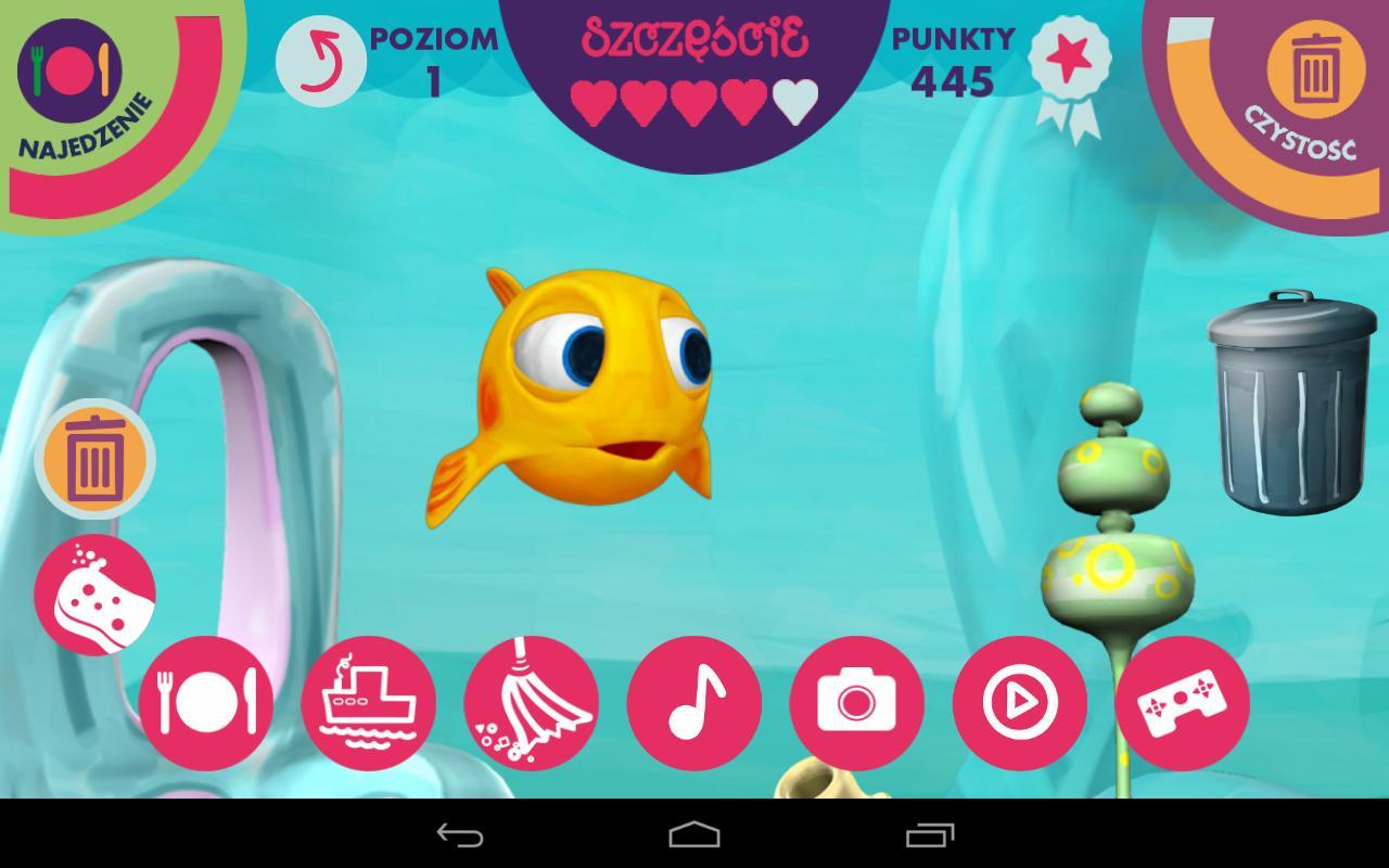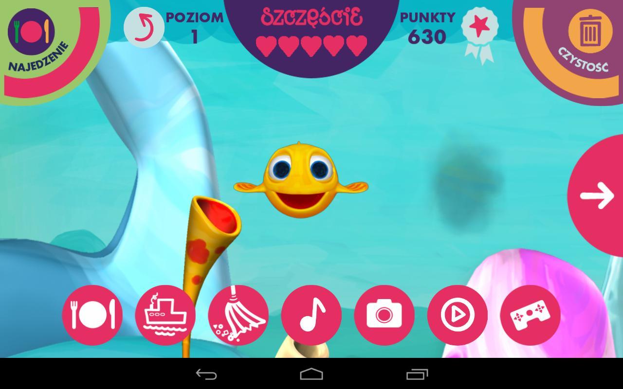 Im Spiel gibt es 6 Levels, die zusätzliche Funktionen zeigen. Spielen Sie Minispiele, schauen Sie sich Videos an, schwimmen Sie, tanzen Sie, wirken Sie ein Foto Ihres Fischminimini an die Facebook -Bewerbung oder senden Sie es per E -Mail an Ihre Freunde!