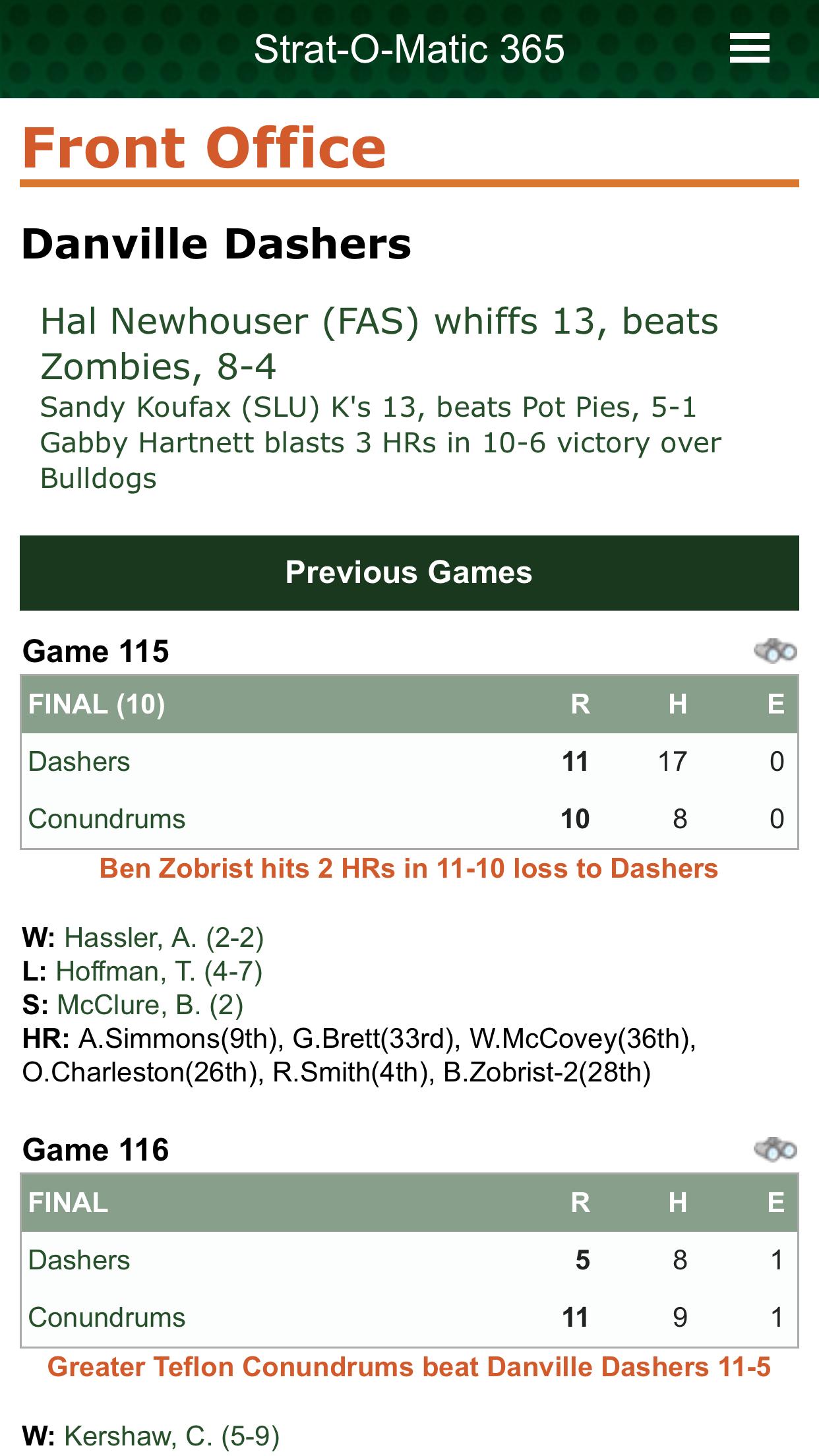 Die offizielle mobile App von Strat-O-Matic Baseball 365