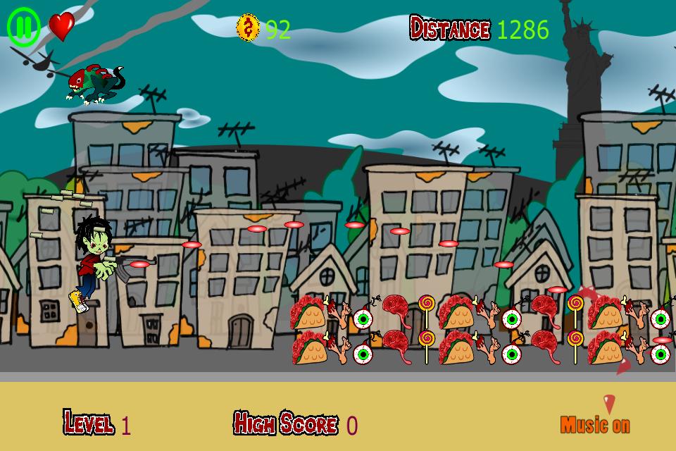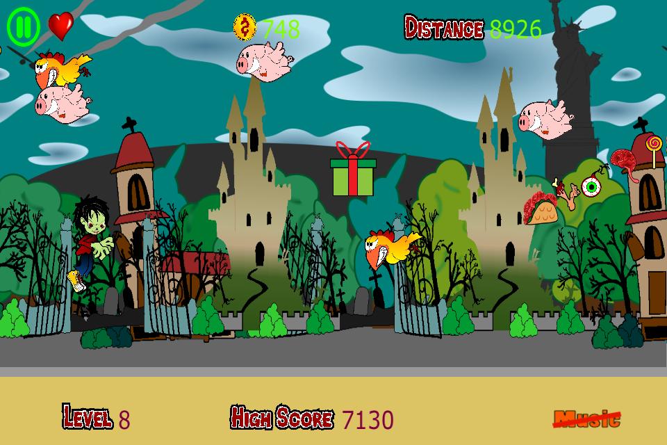 Berühren Sie einfach den Bildschirm für Sprung und pflegen Sie den Dirty Zombie in der Luft.