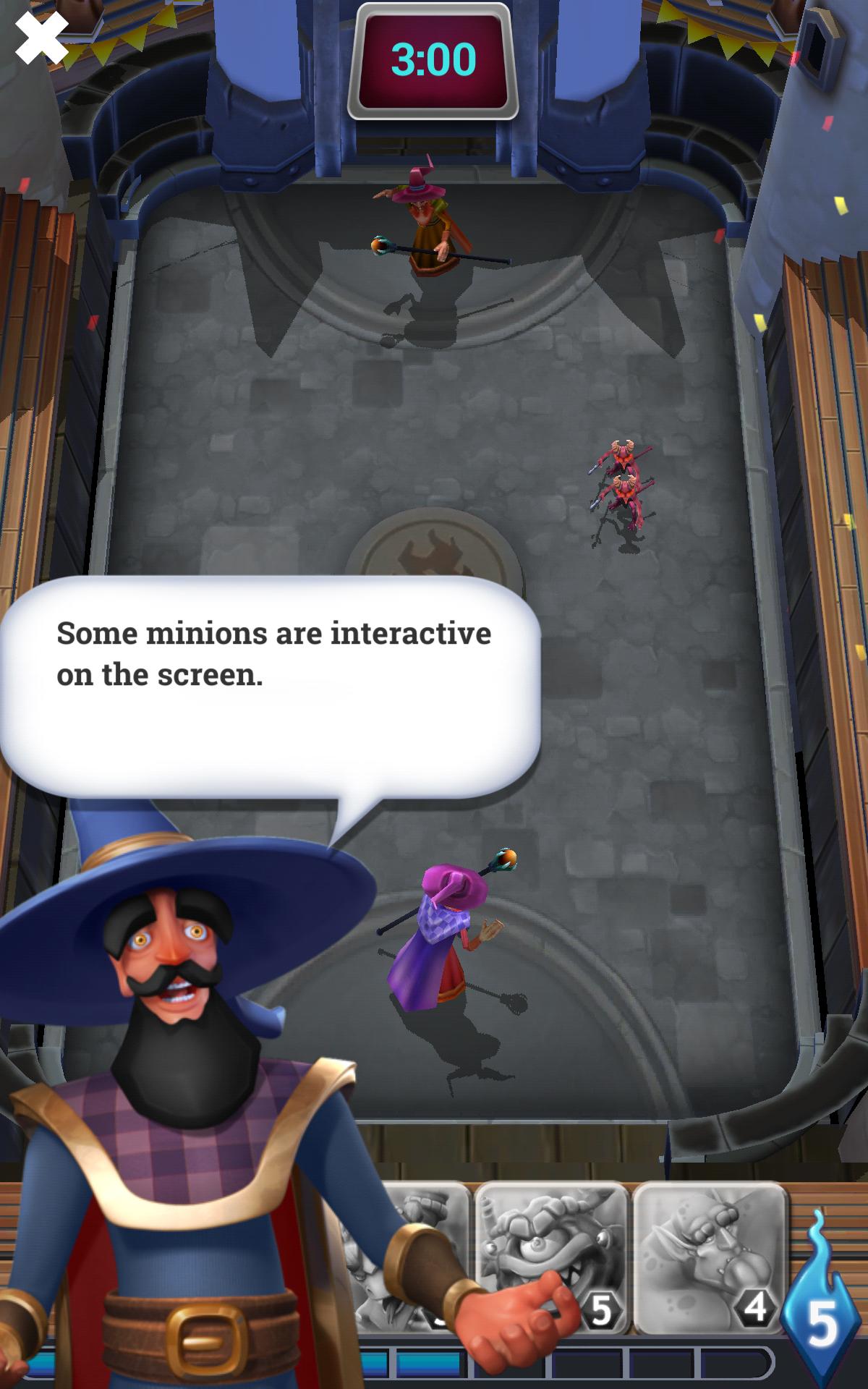 Bekämpfen Sie andere Zauberer in intensiven RTS-Duels und schalten Sie neue Zauber und Herausforderungen frei.