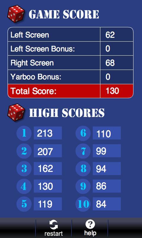 Yarboo ist eine Version des klassischen Pokerwürfelspiels. Es ist so konzipiert, dass es schnell, gut gestaltet und Touchscreenfreundlichkeit ist. Beinhaltet auch die Beschleunigungsmesserunterstützung für Würfelrollen, Hoch -Score -Tische und eingebaute Hilfe.