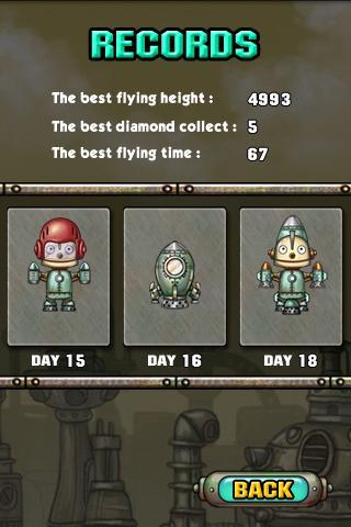 Sie können die Diamanten sammeln und die Missionen abschließen, um bessere Ausrüstungen zu erhalten, um dem Roboter höher und schneller zu fliegen.