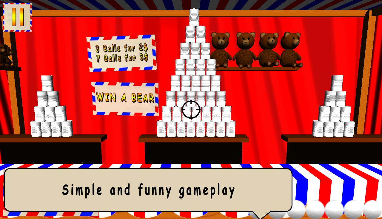 Wollten Sie jemals spielen können, kann Ihr Smartphone oder Tablet abbauen? Jetzt können Sie mit der App 3D - dosenwerfen werfen! Wie der Klassiker kann ein Knockdown abgeworfen werden, und Sie müssen einen Ball auf den Turm der Dosen in CAN -3D werfen. Sie müssen eine minimale Menge an Bällen verwenden, um den kompletten Turm aus dem Tisch abzuschalten. Versuchen Sie Ihr Bestes bei 56 verschiedenen Türmen mit Karnevals. Versuchen Sie, 3 Sterne auf allen Ebenen zu holen oder Ihre Familie oder Freunde zu einem Can-Knockdown-Turnier herauszufordern.