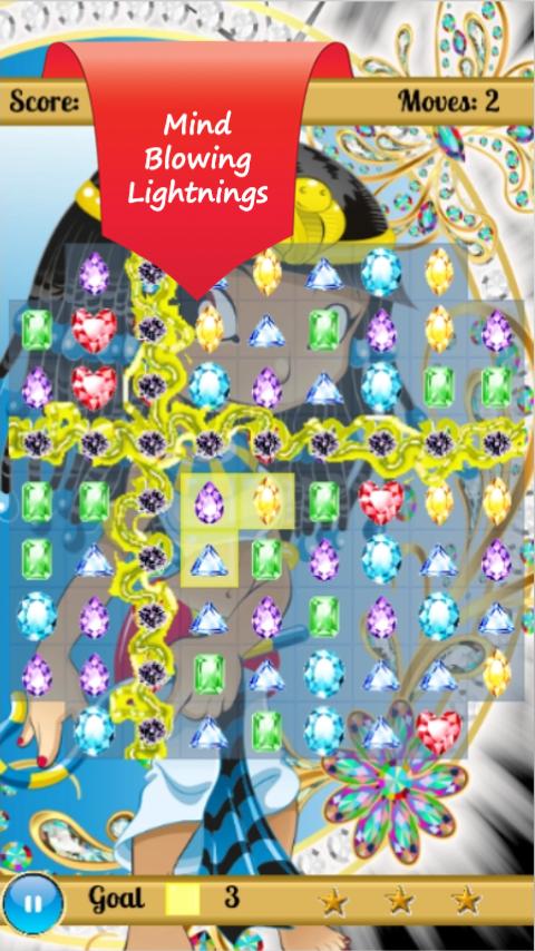 Pyramid Cleopatra's Jewels is an addictive match 3 jewels crush game, there are many different levels, each level has different rules, limited moves, limited time, blow a hole in the screen with special jewel mega bombs, or start an amazing lightning storm in this Egypt Jewel Legend.