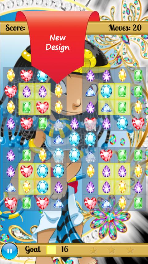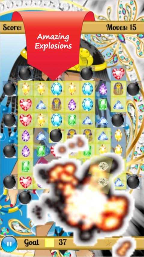 In this fantastic Cleopatra's Jewels Pyramid Legend adventure , you can become a diamond jewels digger and join others on Pharaoh's way of champions and compete with your friends ,just control these jewels crush,splash,blast,or move.