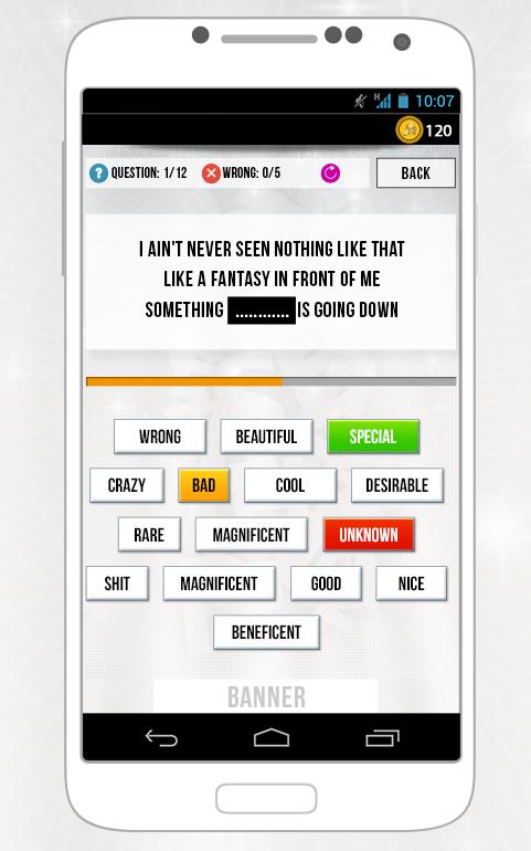 Ihr Ziel ist es, die fehlenden Wörter in den Texten von Coldplay -Songs zu finden. Diese Anwendung ist die neue Generation von Trivia -Spielen. Vergessen Sie die langweiligen Geographie -Rätsel und genießen Sie es, Ihr Bestes zu geben, indem Sie einfach die Lücken in den Tracks Ihres Lieblingskünstlers füllen. Finden Sie die richtigen Wörter und beenden Sie den gleichen Test auf drei unterschiedlichen Schwierigkeitsgraden leicht, mittel hart. Jeder Track hat einen einzigartigen Punkt und versuchen Sie jetzt, alle Punkte durch die Lösung aller Tests zu sammeln.