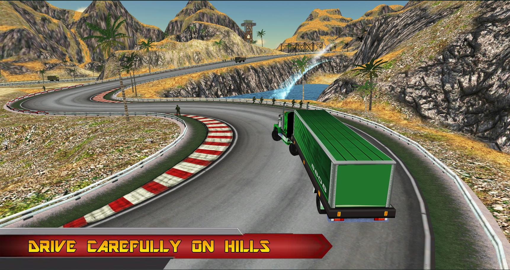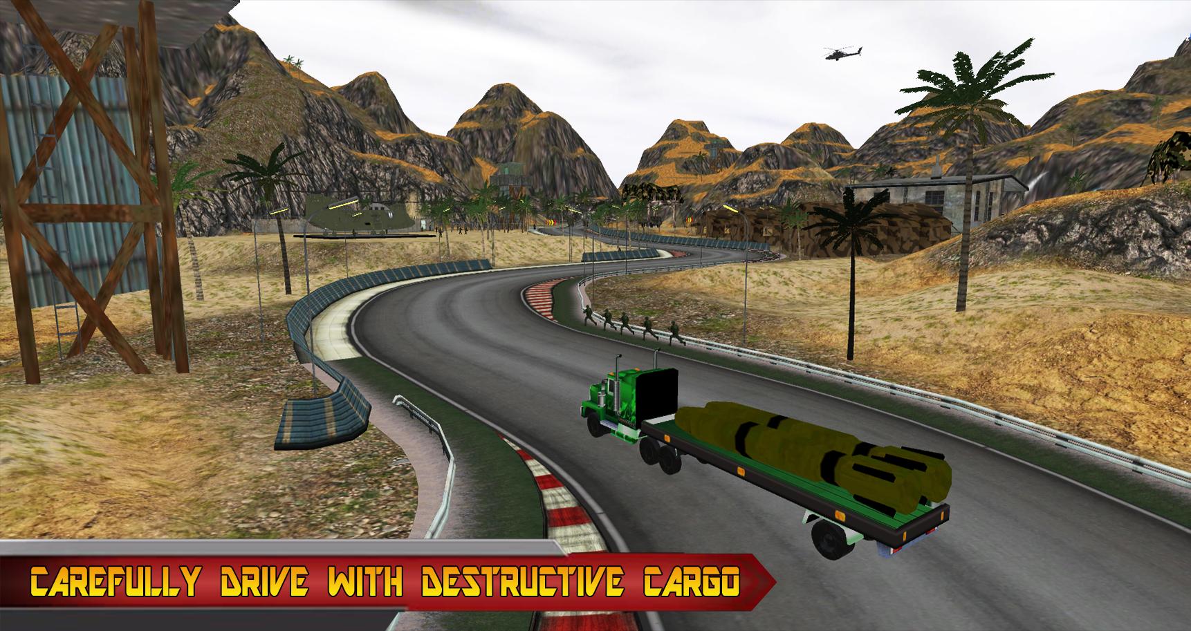 Army Frachtsimulator 3D - Trailer Transporter Duty ist ein neues Armeespiel mit Transport von Armeelast wie Versorgung, Waffen, Soldaten und Raketenbomben mit militärischer Umgebung des Kriegszonens.
