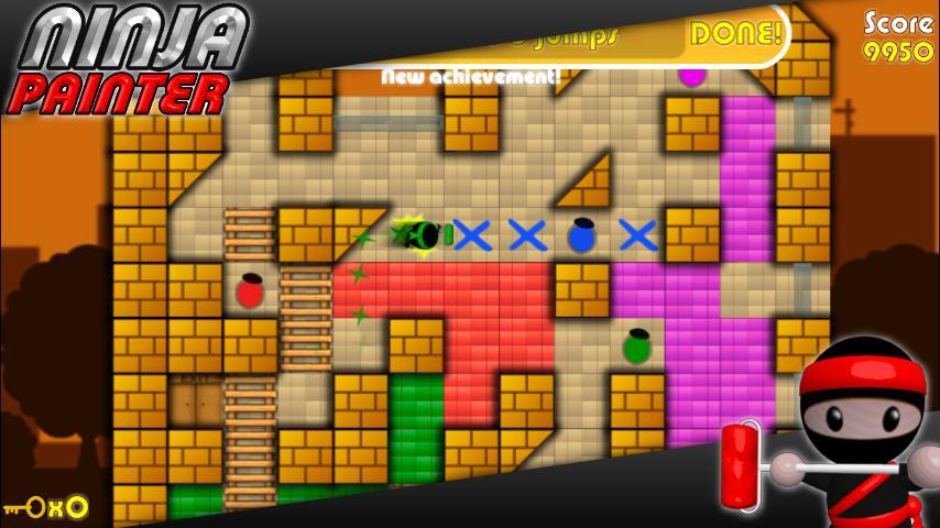 Ninja Painter ist ein farbenfrohes Arcade -Puzzlespiel mit süchtig machendem Gameplay. Malen Sie die Wände an 69 Stufen an 4 verschiedenen Orten und versuchen Sie, alle Erfolge zu erzielen!