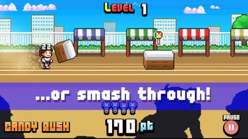 Hindernisse überwinden, um Punkte zu sammeln. Süßigkeiten multiplizieren die Punkte, die Sie für jedes Hindernis verdienen.