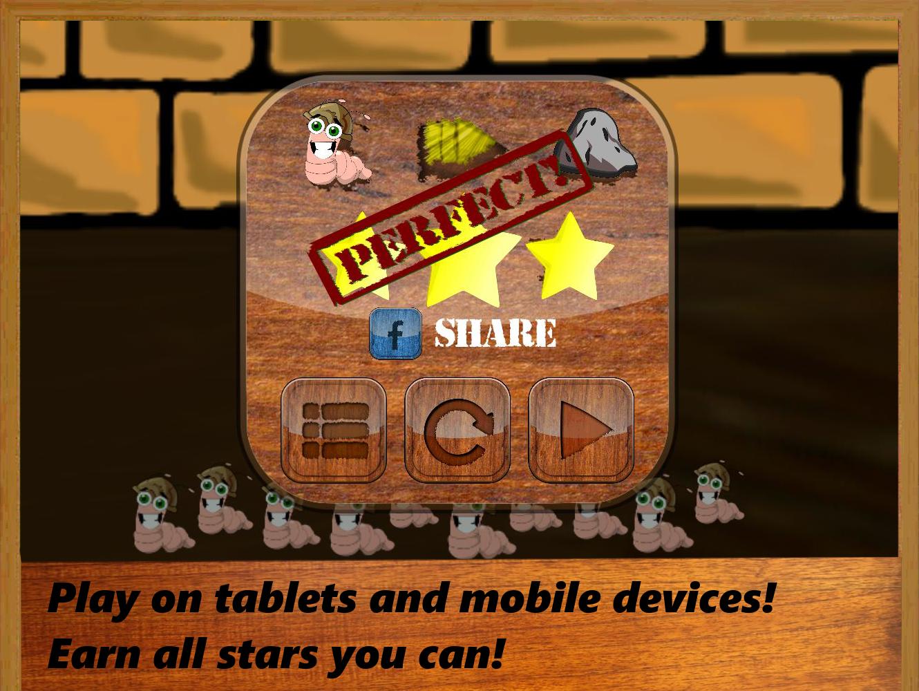Es gibt 3 Schritte, um alle Würmer zu speichern. Sie müssen den besten Weg finden, um sie in 24 einzigartigen Ebenen in zwei Welten zu kombinieren. Weitere Welten werden bald kommen.
