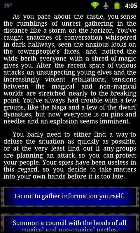 Ein Text -Abenteuer- und Erkundungsspiel, bei dem Sie die Auswahl treffen, wählen Sie Ihren Weg ein lustiger Casual Story -Leser, in dem Sie auswählen, was als nächstes passiert. Möchten Sie, dass Ihr Charakter das gruselige alte Schloss erkundet oder sich im Wald versteckt? Niemand außer Sie entscheidet, wie die Geschichte ausgehen wird!
