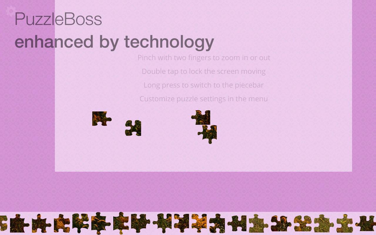 PuzzleBoss ist ein Puzzlebternehmen des 21. Jahrhunderts und Schöpfer einer unvergleichlichen digitalen Erfahrung für Puzzles. Wir sind traditionellen Puzzles treu geblieben, haben aber die moderne Technologie sorgfältig angewendet, um sie angenehmer zu machen. Durch unsere fortschrittlichen Puzzle-Einstellungen können Sie Ihre Rätsel so anpassen, dass sie wie Kartonzusagen sind oder Funktionen wie Kantenabschlüsse, Wischstückbalken, Zoom und veränderliche Hintergründe für ein modernes Puzzle-Erlebnis verwenden.