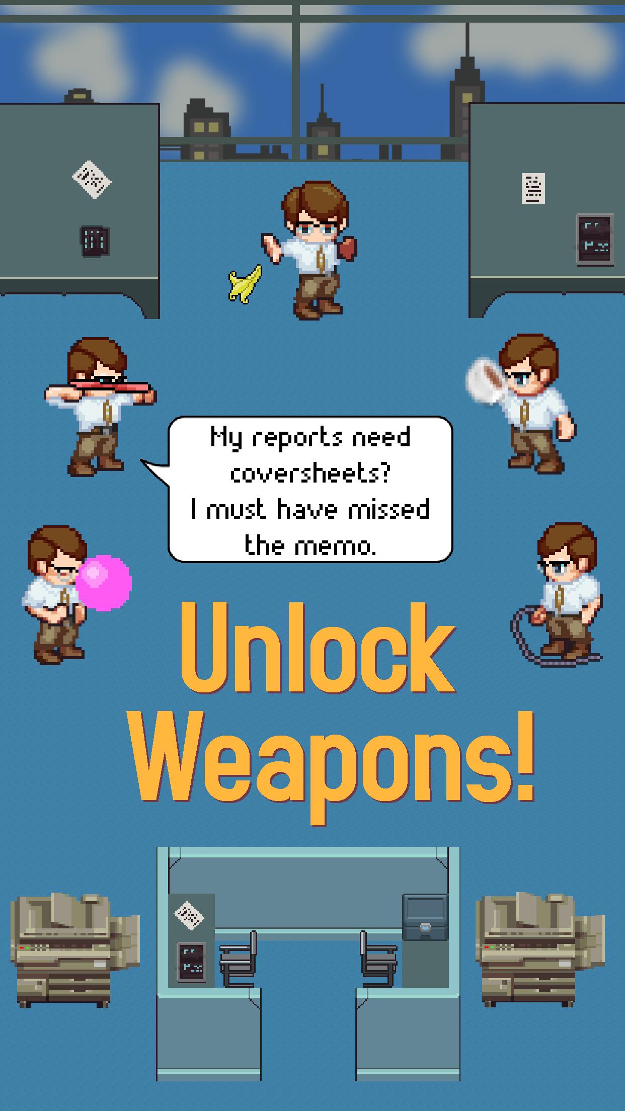 - Steigen Sie die Rangliste, während Sie durch das Büro vorrücken und diese lästigen Chefs niederschlagen