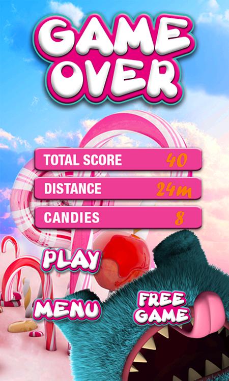 Vermeiden Sie die Hindernisse und sammeln Sie so viele Süßigkeiten wie möglich.