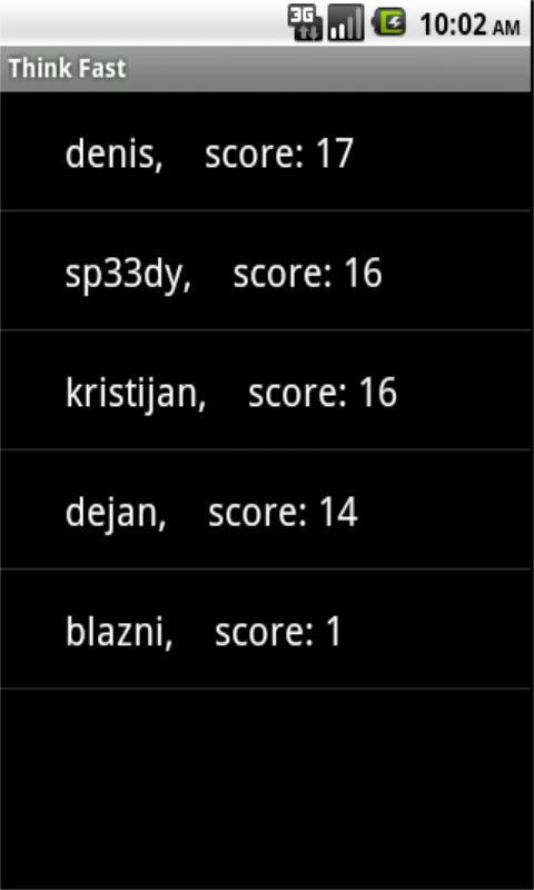 Wenn Sie einfache Mathematikoperationen mögen und mit Ihren Freunden konkurrieren, Think Fast die Anwendung für Sie ist. Indem Sie in einer Minute so viel Mathematikoperationen wie möglich lösen, können Sie Ihr Ergebnis online vergleichen und sehen, wie gut Sie sind. Sie haben drei Schwierigkeiten zur Auswahl. Probieren Sie es aus.