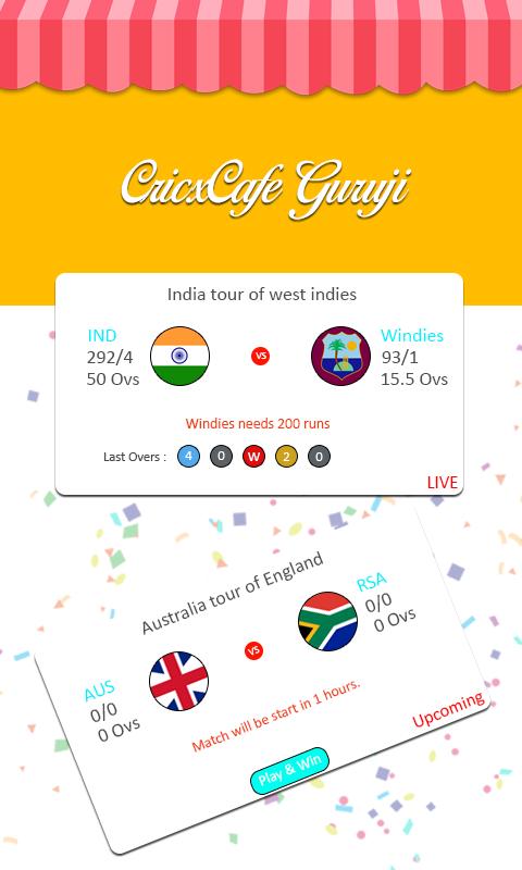 CricxCafe bietet eine Möglichkeit, unter Vorhersage der Antwort auf die Punktzahl zu unterhalten.
