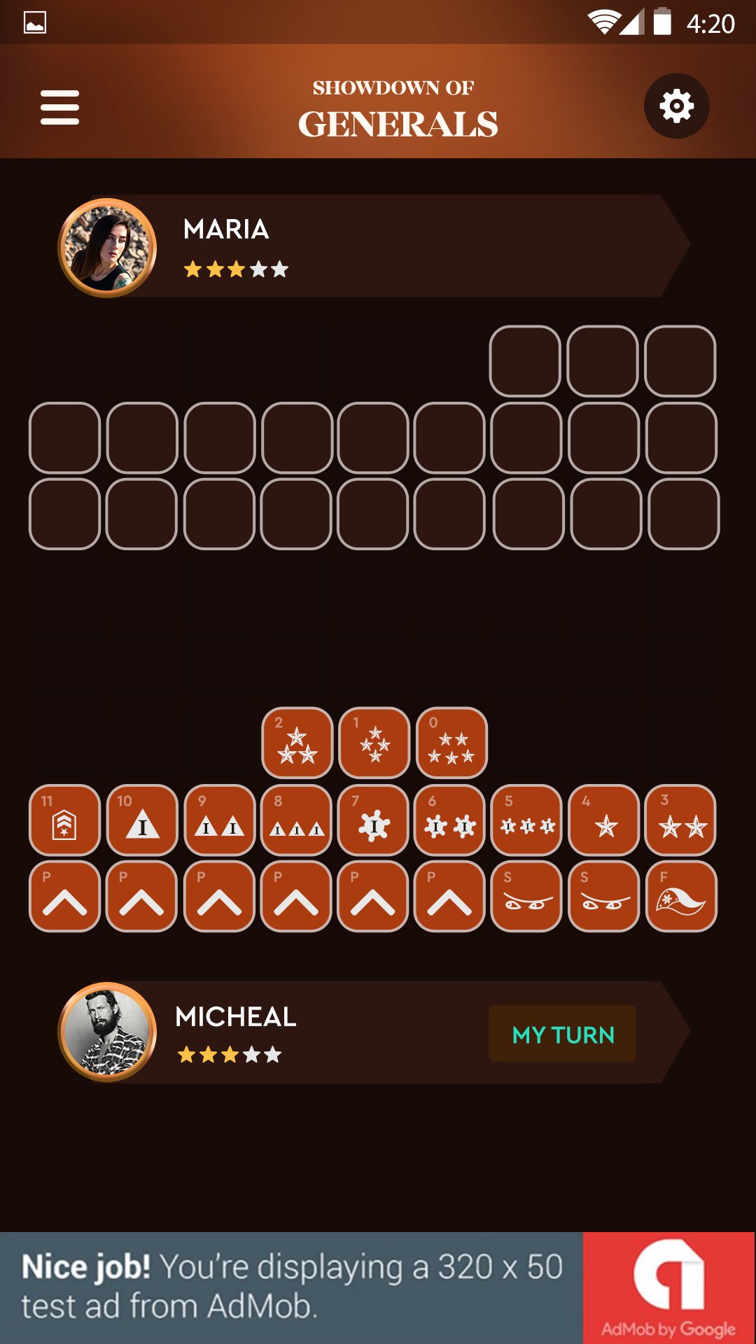 Jeder Spieler befehligt eine Armee aus 21 Teilen – vom 5-Sterne-General bis zum Privatmann – einschließlich 2 mächtigen Geheimagenten (Spion).