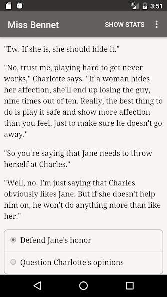 Spielen Sie "Pride and Prejudice", den klassischen Roman -Roman! Sie sind 1813 eine junge Frau und hoffen, Ihre wahre Liebe zu finden. Aber welchen Ihrer fünf Freier werden Sie bevorzugen? Der distanzierende Adlige Mr. Darcy? Der liebenswürdige Mr. Bingley? Der stickige Mr. Collins, der gutherzige Oberst Fitzwilliam oder der bösartige Mr. Wickham?