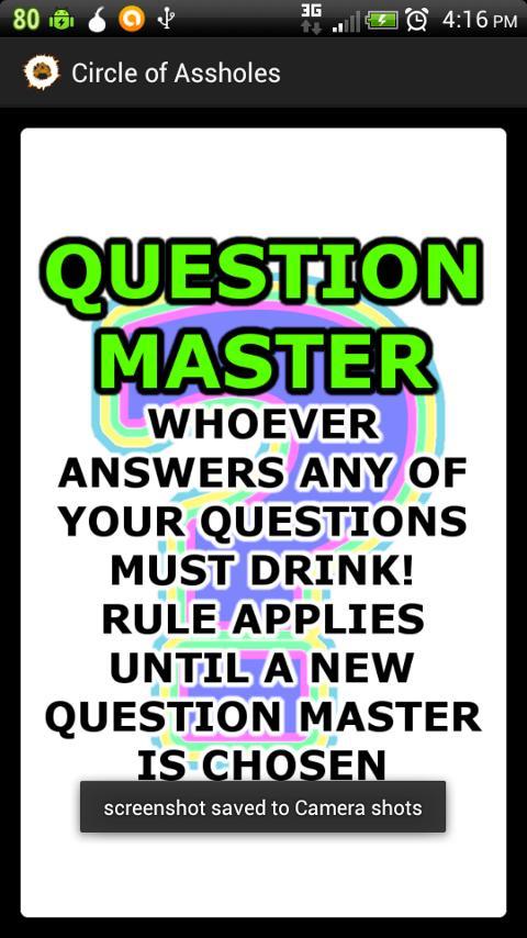 Dies ist die freie Version von Circle of Arschlöcher. Es ist eine Mischung aus dem Trinkspielkreis des Todes und des Präsidenten mit einigen Verbesserungen. Dieses lustige Trinkspiel ist für die leichteren Spieler. Es geht um das Trinken, aber es fehlt die verrückteren Herausforderungen der Hangover -Edition. Wenn Sie Circle of Assholes: Free Edition mögen, können Sie Circle of Assholes: Hangover Edition lieben.