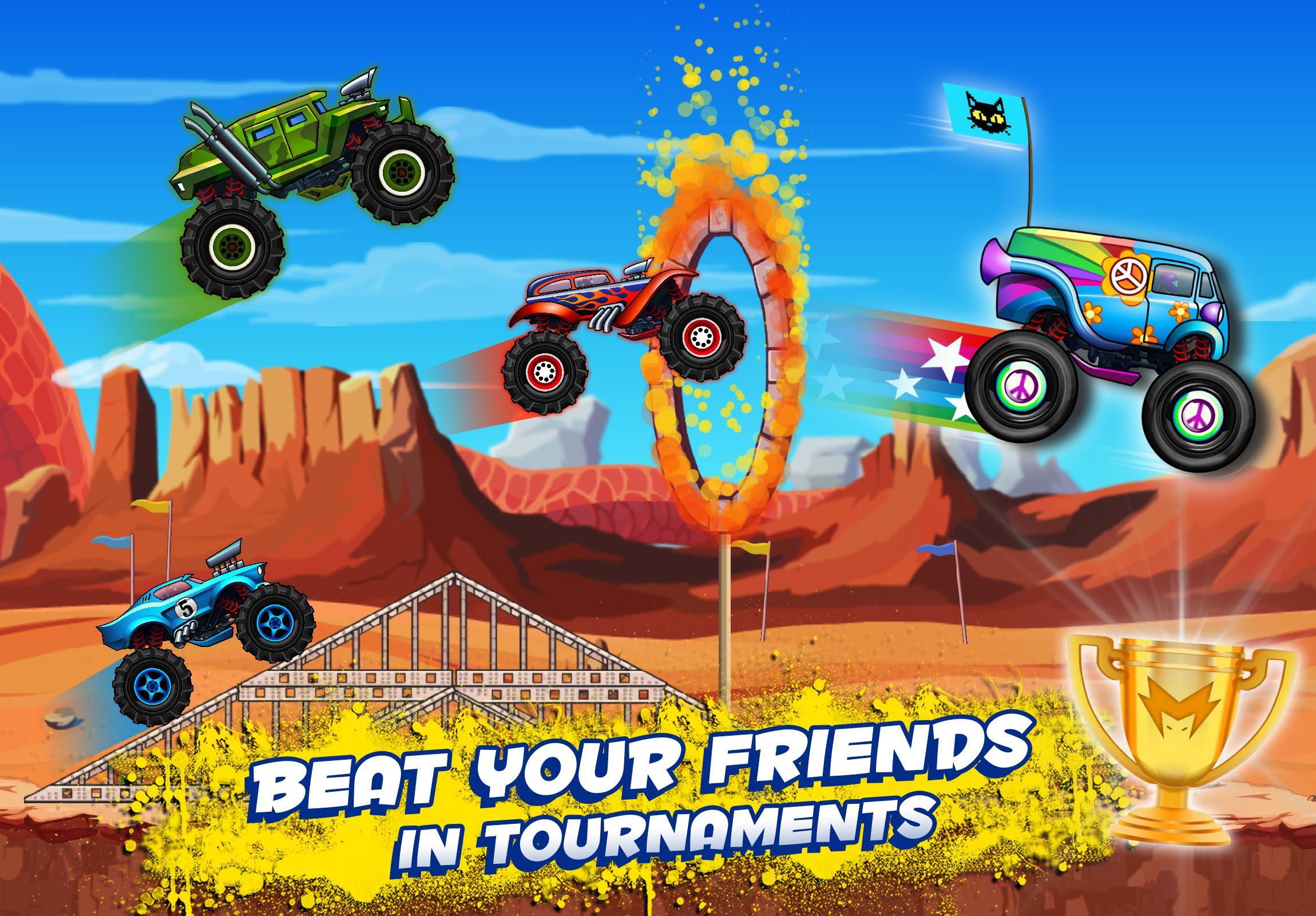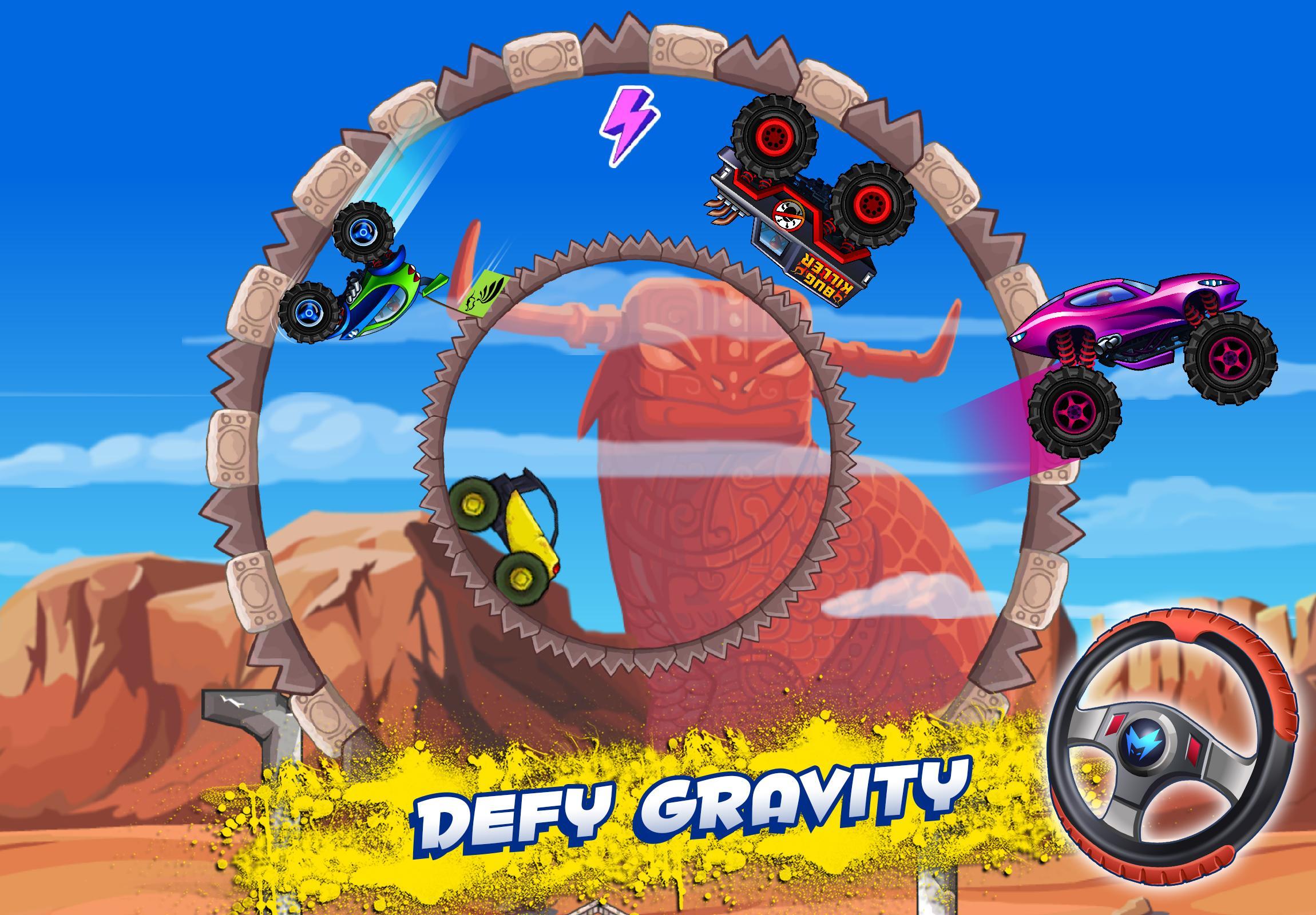 Fahren Sie aufregende Rennen durch die Wüste oder den arktischen Kreis. Ziehen Sie die Schwerkraft-trockenen Manöver ab, während Sie Ihre Rivalen in Ihrem Auto überholen! Brennen Sie Gummi, Springen Sie Hügel und Geschwindigkeit durch verrückte Schleifen, während Sie Nitro sammeln, um Ihre Leistung zu steigern! Verwenden Sie Münzen, um Ihr Auto mit einigen verrückten Upgrades zu ändern, um sicherzustellen, dass Sie weiterhin die Strecke regieren.
