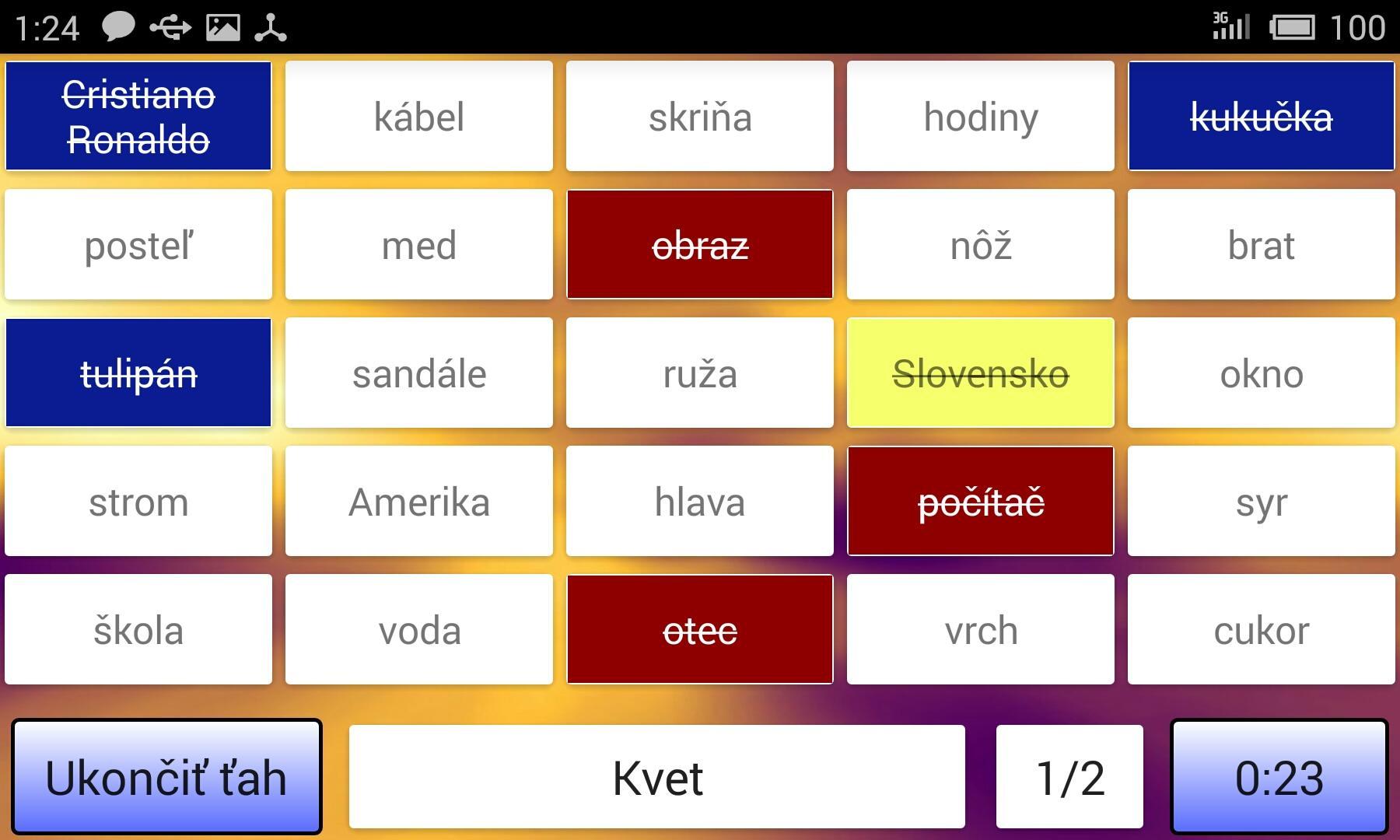 Diese Anwendung sollte ein originales Tabellenspiel namens Covernamen simulieren. Wenn Sie dieses Smartphone-Spiel spielen, werden Sie natürlich nicht die gleiche Erfahrung erhalten, als würden Sie es mit echten Karten gespielt, aber ich habe versucht, diese App so zu programmieren, dass sie relativ "benutzerfreundlich" ist. Dieses Spiel würde besser durch mehrere Geräte gespielt, die in irgendeiner Weise kommunizieren würden, aber aufgrund meiner Laienkenntnisse wird diese Anwendung dieser Leistung entzogen, sodass nur ein Gerät gespielt wird und einzelne Spieler das Smartphone während des Spiels von Hand zu Hand bedienen. Viel Spaß :)