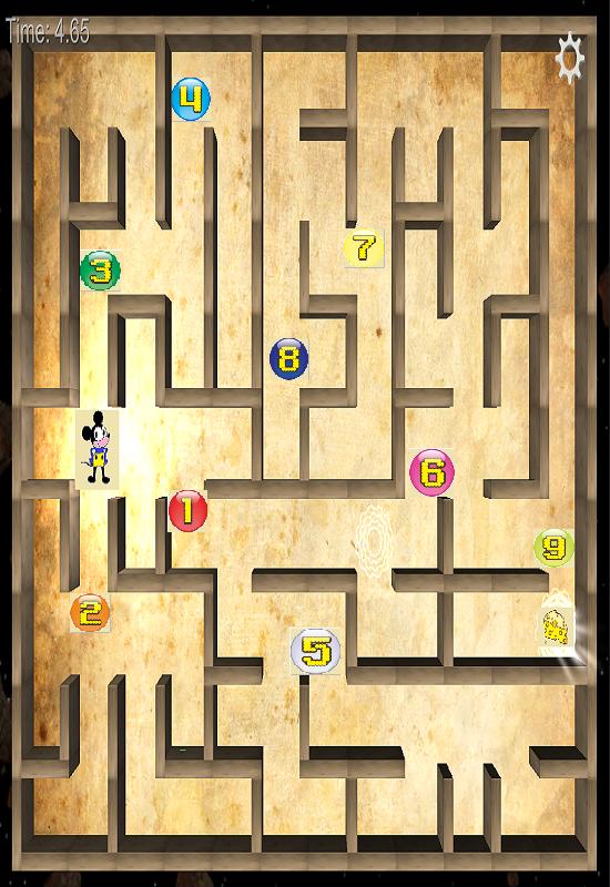 Mickey im Labyrinth und sucht nach Käse.