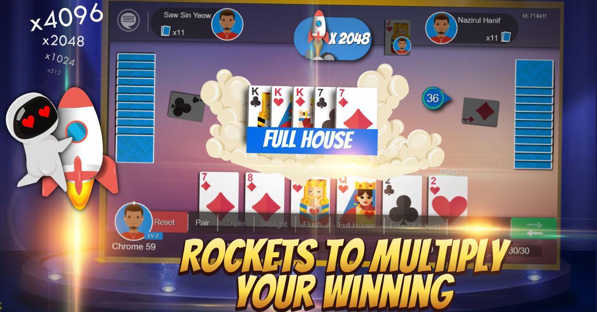 - Um das Spiel aufregender zu machen, wird ein Teil der hohen Hand, die in einem Match gespielt werden, die Rakete auslösen? , jede Rakete? Wird die Gesamtchips, die der Gewinner gewonnen hat, erheblich erhöhen. Unten sind die hohen Hände, die die Rakete auslösen? :