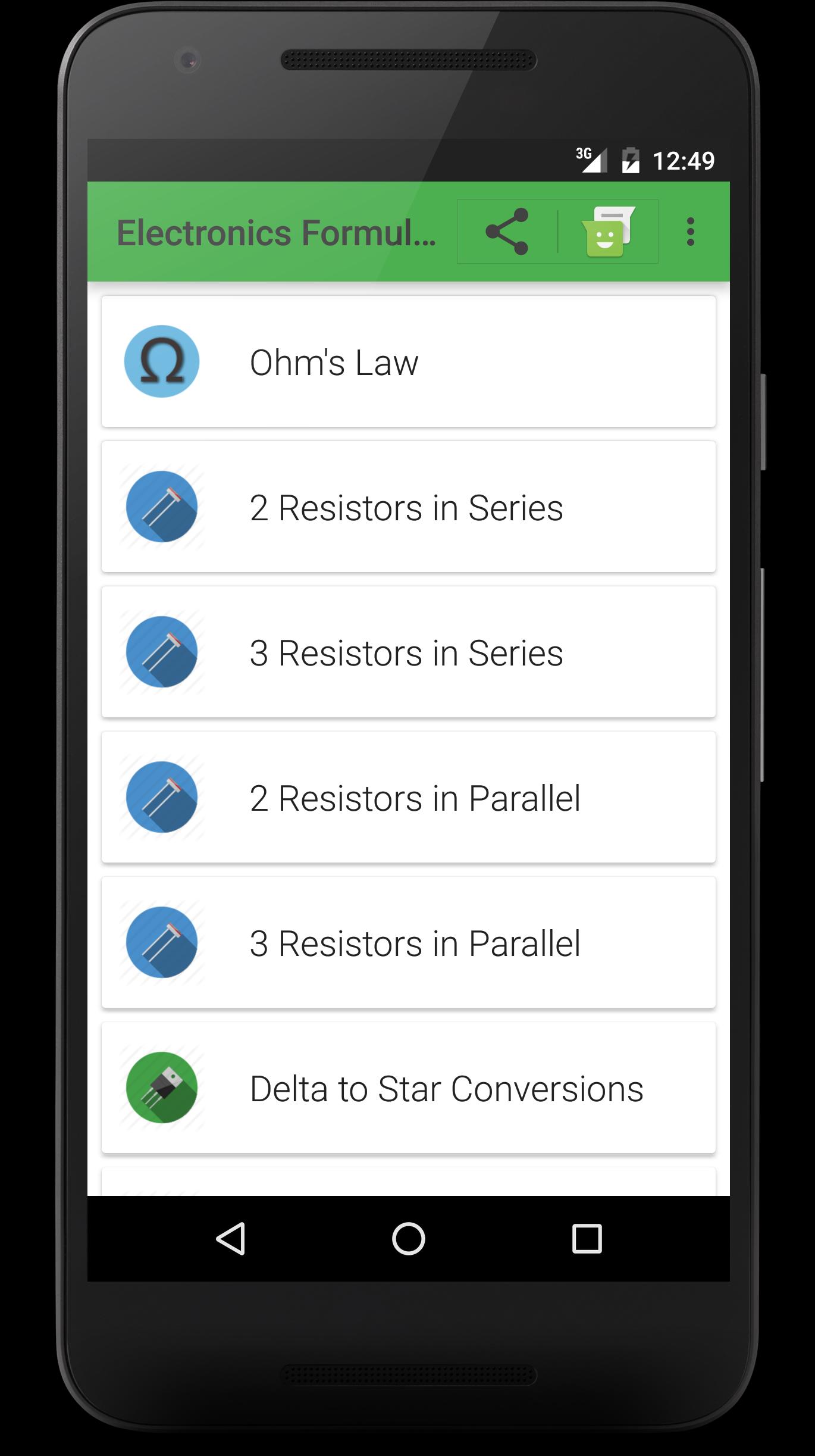 Lista simple de Electronics Formulas con calculadoras