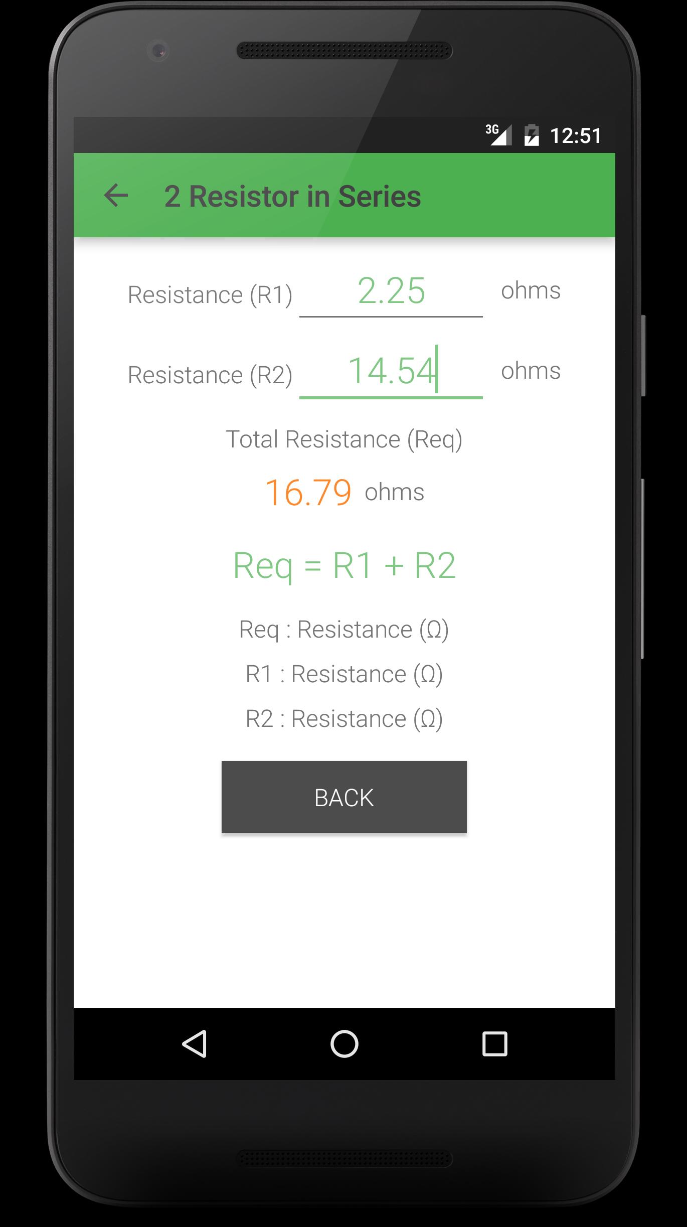 Puede encontrar las siguientes fórmulas eléctricas en esta aplicación: