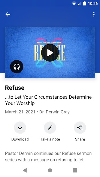 • Escuche o vea sermones de nuestro pastor principal Dr. Derwin L. Gray.