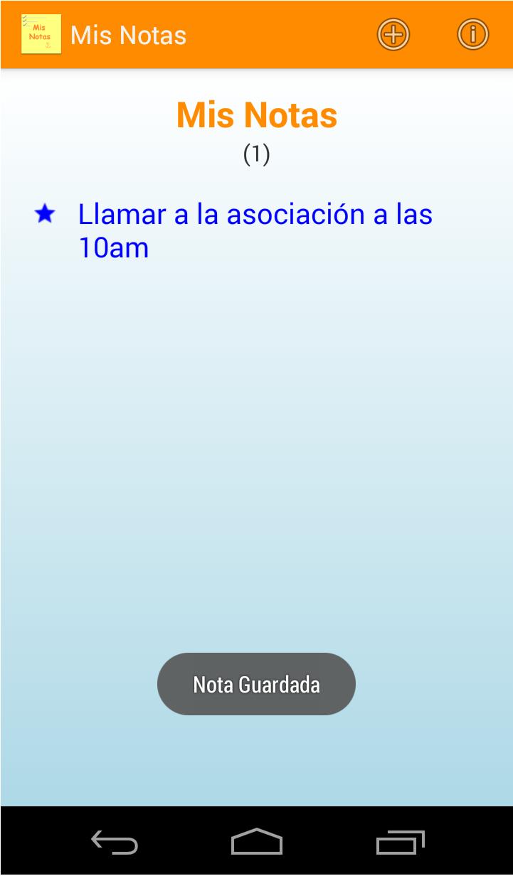Con la aplicación Mis Notas podras crear notas cortas de manera fácil y rápida. Podrás actualizar tus notas modificandolas, además de que podrás compartir el contenido de tus notas, donde tu dispositivo te lo permita, puede ser por facebook messenger, por whatsapp, por mensaje, de la manera que quieras. Y si asi lo deseas puedes ir eliminando tus notas de manera segura