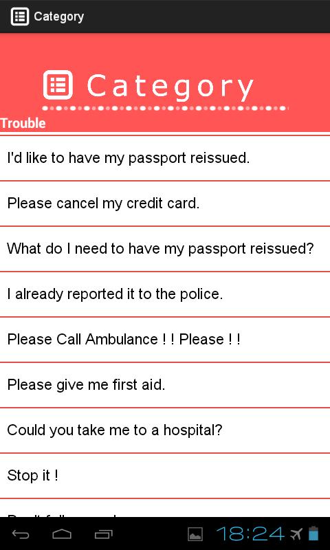 Si selecciona una categoría, verá una conversación de viaje de detalles de japonés inglés chino